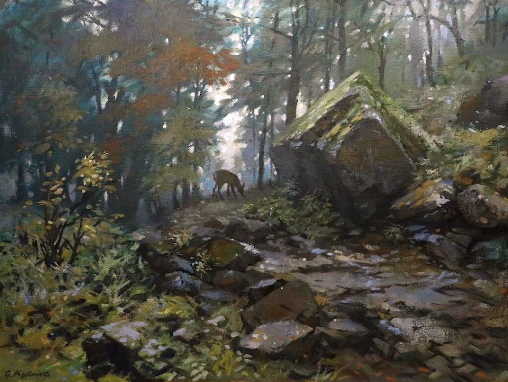 On the trail near the Websters Falls. Oil. Canvas. 48″ by 36″.
